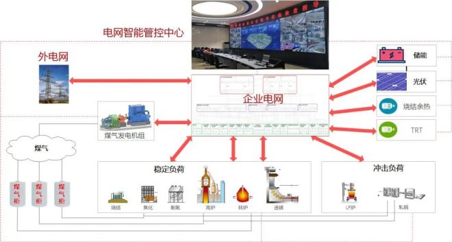 實現企業電網源網荷自動化協調控制,為千萬噸級鋼鐵企業每年節約費用約3億元,減少CO?排放約0.033噸/噸鋼,減少企業電網運維人員90%,經濟和社會效益顯著,已在豐南鋼鐵、石橫特鋼、臨沂鋼鐵等多個項目中得到成功推廣和應用,對進一步提升鋼鐵行業節能減排具有重大意義。同時,將分布式光伏、分散式風電、高效熱泵、新型儲能、余熱余能發電等新能源系統納入電網智能化系統的管控范圍,保證新能源發電完全消納利用,構建清潔低碳、安全高效的新型電力系統,實現企業新能源自發自用,余電不上網,大幅節省基本電費。