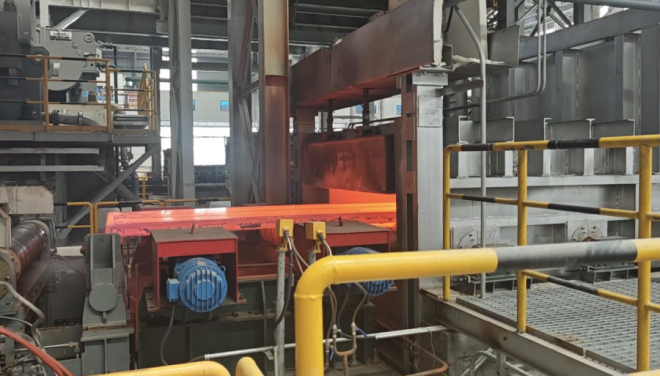 中冶華天堅持“高起點定位、高水平規劃、高標準建設”,對標國際先進、國內一流,瞄準前沿工藝技術,以最嚴格的標準開展該項目設計,處處彰顯匠心:采用成熟的粗軋和精軋分離式布置,粗軋機為3架大壓下軋機,精軋機為5架高強度軋機,配置最先進的凸度和板型控制裝置,可實現無頭模式下帶載動作;在軋機區配置高壓冷卻系統,當采用熱機軋制工藝時,可通過控制軋機溫度來控制晶粒生長,既能減少微合金元素用量,又能提高產品機械強度;采用高強度軋機生產0.8毫米薄板,可以實現“熱”代“冷”,降低生產成本;采用兩點除鱗技術,在粗軋機和精軋機入口配置高壓水除鱗,有效除去表面的氧化鐵皮,保證產品的表面質量;配置電感應加熱爐,在無頭模式下,保證產品內部組織不受溫度的影響,使產品的內部組織和機械性能一致;層流冷區配備強力和常規冷卻單元,對不同規格的產品,通過調節流量和壓力,使冷卻水流在帶鋼表面形成平滑連貫的層流,有效地沖破帶鋼表面的蒸氣膜,減少氧化和脫碳,提高冷卻效果。最終,該生產線在同行業中裝備水平高、自動化水平高、勞動生產率高,達到國內同類企業先進水平,同時實現超低排放要求。(蔡民雄)