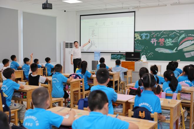 開營儀式后,夏令營學(xué)生就分別前往各自所在的班級,開啟了本次夏令營的第一課。施柯奕是一名即將步入小學(xué)五年級的學(xué)生,這也是她首次參加該集團舉辦的夏令營,她被分配到了設(shè)置在職工子弟托管基地的六班。