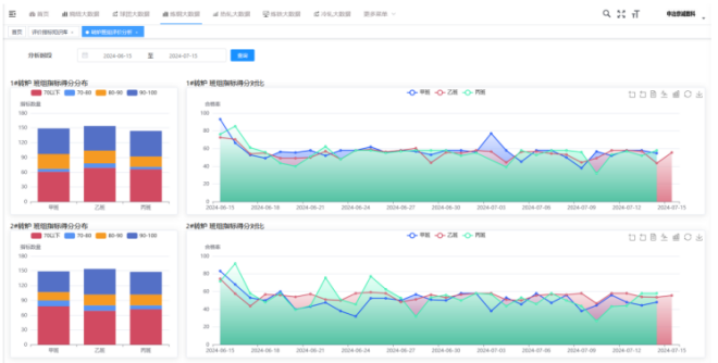 質量評價模塊通過量化打分機制,助力企業精準復盤生產過程,總結提升經驗,規避不良操作,推動生產技能持續提升,是對已完成爐次或鋼坯進行評價的關鍵環節。該模塊側重于事后分析,通過量化評價生產質量管控水平,幫助一線生產人員直觀了解生產過程中的優勢與不足。結合各類生產數據,模塊能夠回顧分析指標得分高低原因,為下一次生產提供寶貴的參考,推動生產水平的不斷提升和持續改進。