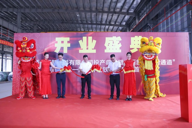 在投產典禮上,還見證了“西部陸海新通道”北海鐵山港至湖南懷化鐵路專用線的首發儀式,卓輝公司首批磨砂卷從北海鐵山港通過鐵路運輸首發發往湖南懷化市場,這將進一步增強西部與中部地區的交通連接。