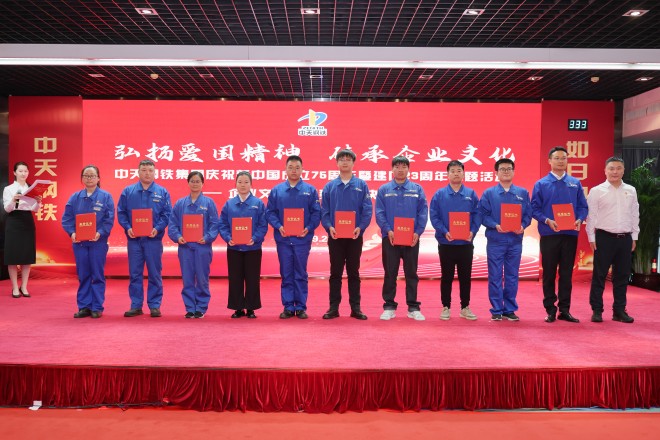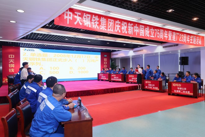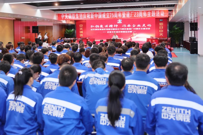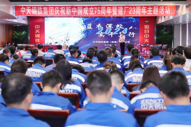 9月26日,中天鋼鐵集團慶祝新中國成立75周年暨建廠23周年主題活動盛大舉行。中天鋼鐵集團董事局主席、總裁、黨委書記董才平勉勵全員要樹立“文化興企”的理念,傳承和弘揚優(yōu)秀中天文化,在全集團內(nèi)掀起企業(yè)文化建設新浪潮,共同書寫中天鋼鐵新的輝煌篇章。