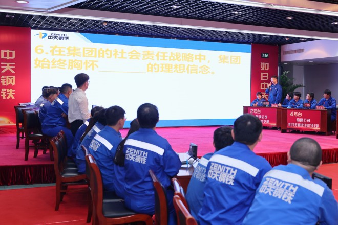 本次競賽設有必答題、搶答題、風險題三種類型,考題涵蓋《中天鋼鐵集團企業(yè)文化綱領手冊(V2.0)》等內(nèi)容。現(xiàn)場,參賽選手信心滿滿、全情投入,在比拼知識儲備的同時,更凸顯團隊的謀略和配合,現(xiàn)場觀眾不時報以熱烈掌聲。