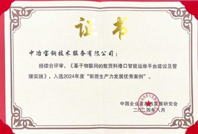日前,從中國企業改革與發展研究會和新華網共同舉辦的“新興向榮 質勝未來—新質生產力發展案例分享會”獲悉,中冶寶鋼參評的《基于物聯網的散貨料港口智能運維平臺建設及管理實踐》《再生資源綜合利用運營實踐》兩項成果獲評“新質生產力發展優秀案例”。