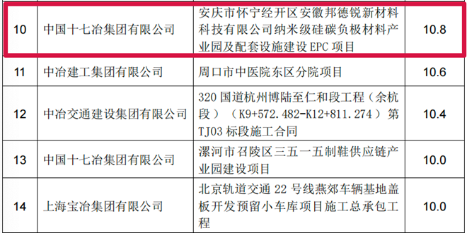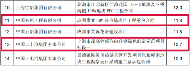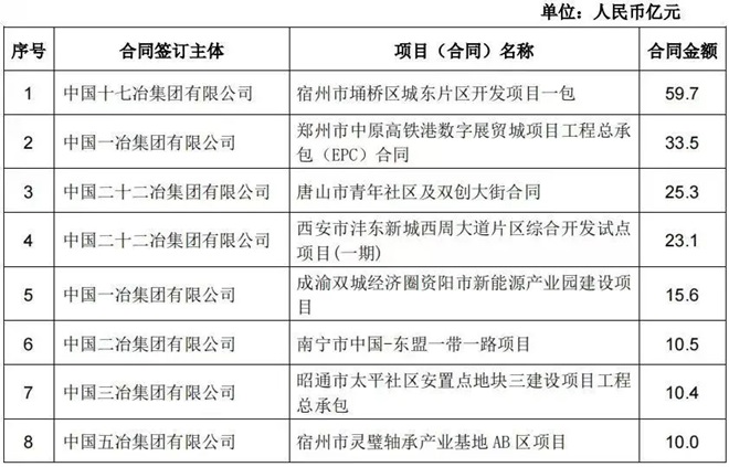 9月份,中國中冶部分新簽單筆合同額在人民幣10億元以上的重大工程承包合同如下——
