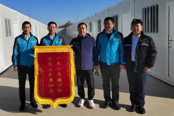 分秒必爭、使命必達,264小時搶建“生命方舟”。2021年10月27日,中國二十二冶接到緊急通知,要求限期十天內完成邢臺市新河縣臨時方艙隔離點建設任務,并達到使用條件。疫情就是命令,防控就是責任。自接到政府部門指令后,中國二十二冶高度重視,從邢臺各在建項目調遣精兵強將組建成搶工團隊,組織施工隊伍與機械第一時間進駐現場。項目實行“掛圖作戰”,建立“一小時調度”機制,及時了解工程進度、即刻解決問題,以“多點多組多面”的方式進行不間斷作業。2小時完成初步方案設計,5小時完成雨污水管網安裝方案,6小時完成自來水管網安裝布設,48小時完成4臺變壓器安裝施工及供電保障,3天完成2萬方基礎回填平整和地面硬化及通訊、聯通5G網絡安裝建設,7天完成410間方艙安裝......為邢臺取得抗疫斗爭階段性勝利提供了有力保障,收到新河縣住房和城鄉建設局送來的“十天十夜建方艙 責任央企勇擔當”的錦旗與表揚信。2023年4月9日,中國二十二冶再度扛起“硬核”擔當,圓滿完成邢臺市新河縣方艙隔離點包含160間地上獨立方艙擴建任務,再次充分彰顯了央企“頂梁柱”和“壓艙石”的作用。