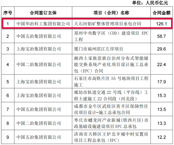 5月部分新簽單筆合同額在人民幣10億元以上的重大工程承包合同