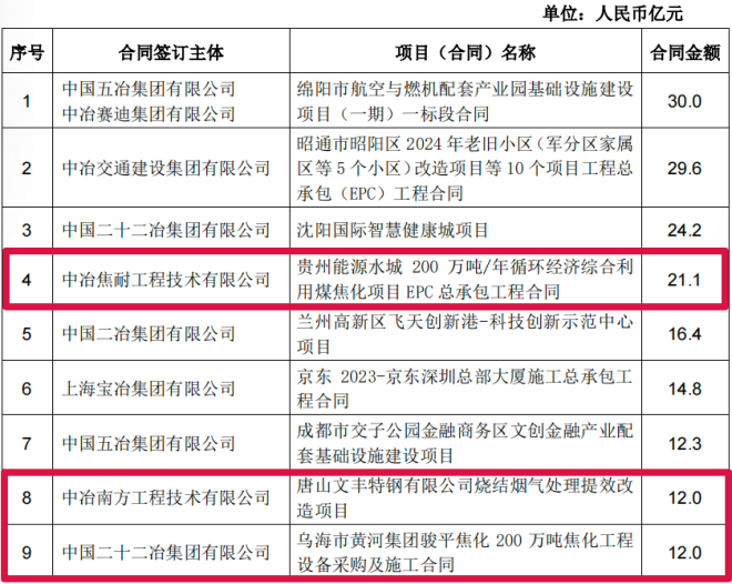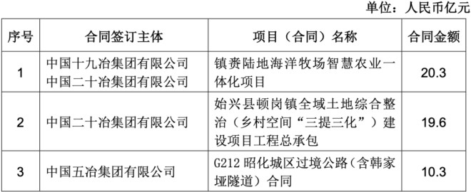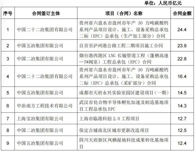 9月部分新簽單筆合同額在人民幣10億元以上的重大工程承包合同