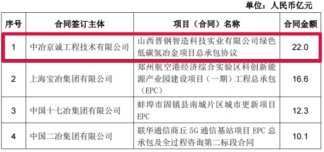 1月部分新簽單筆合同額在人民幣10億元以上的重大工程承包合同