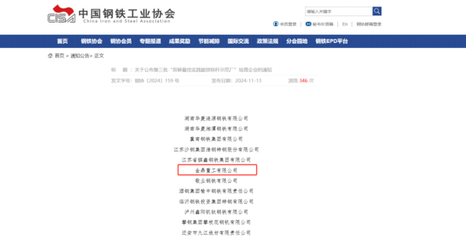 近日,中國(guó)鋼鐵工業(yè)協(xié)會(huì)公布了第三批“雙碳最佳實(shí)踐能效標(biāo)桿示范廠”培育企業(yè)名單,經(jīng)過企業(yè)申報(bào)、協(xié)會(huì)評(píng)審、審定,金鼎重工有限公司入選,這是對(duì)金鼎堅(jiān)持極致效率、極致效益取得良好示范效應(yīng)的認(rèn)可。