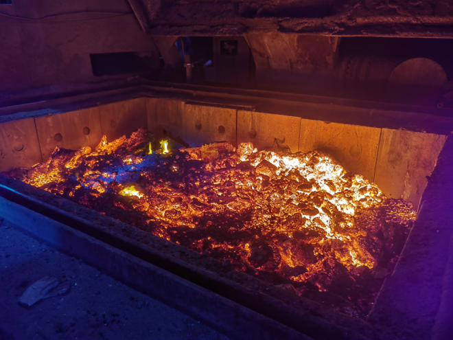 改造后的悶渣池悶渣時(shí)間縮短,熱悶后的鋼渣粒化效果好、含水率低,完全滿足后續(xù)二次生產(chǎn)線破碎磁選的生產(chǎn)要求,整個(gè)悶渣過程全流程實(shí)現(xiàn)自動(dòng)化控制一鍵悶渣。