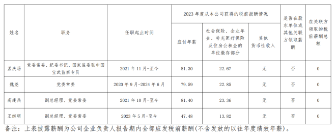2024年12月26日,中國(guó)寶武公布企業(yè)負(fù)責(zé)人2023年度薪酬情況。具體情況如下表: