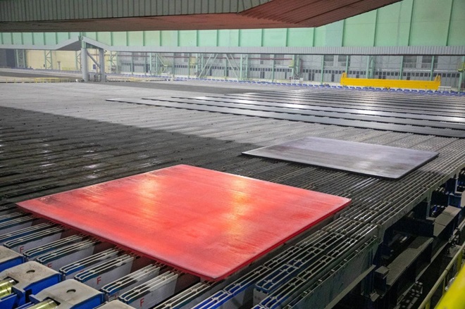 1月24日,河南鋼鐵集團周口基地二期寬厚板生產現場機器轟鳴、熱浪灼人,火紅的鋼坯經過“世界最寬5600mm軋機”的多道軋制,寬度達5350mm的板材成功下線。經檢驗,各項指標均符合要求,標志著周口基地5600mm軋機的軋制寬度達到了設計能力。