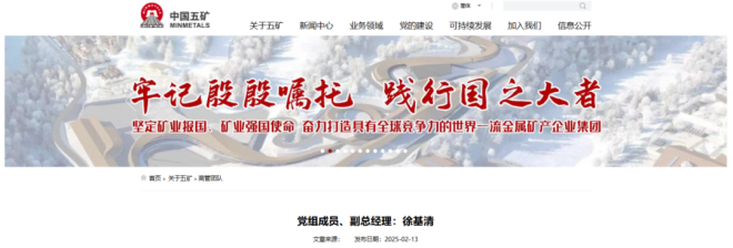 近日,從中國五礦官網(wǎng)獲悉,徐基清已任中國五礦黨組成員、副總經(jīng)理。