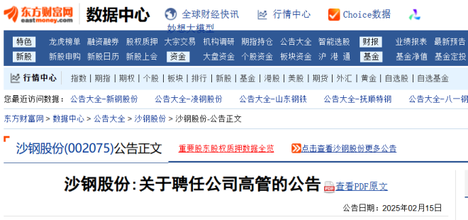 近日,沙鋼股份發(fā)布了《江蘇沙鋼股份有限公司關(guān)于聘任公司高管的公告》。