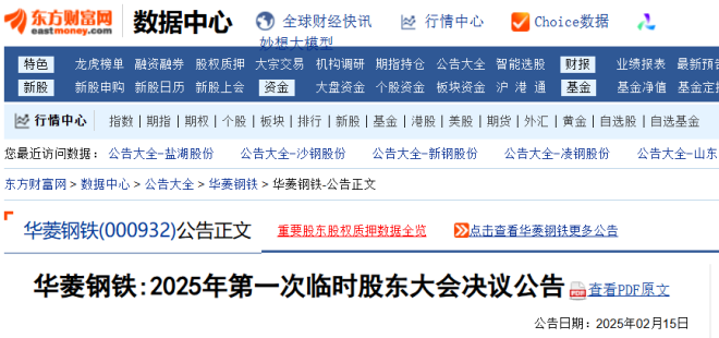 近日,華菱鋼鐵發(fā)布了《湖南華菱鋼鐵股份有限公司2025年第一次臨時(shí)股東大會(huì)決議公告》。