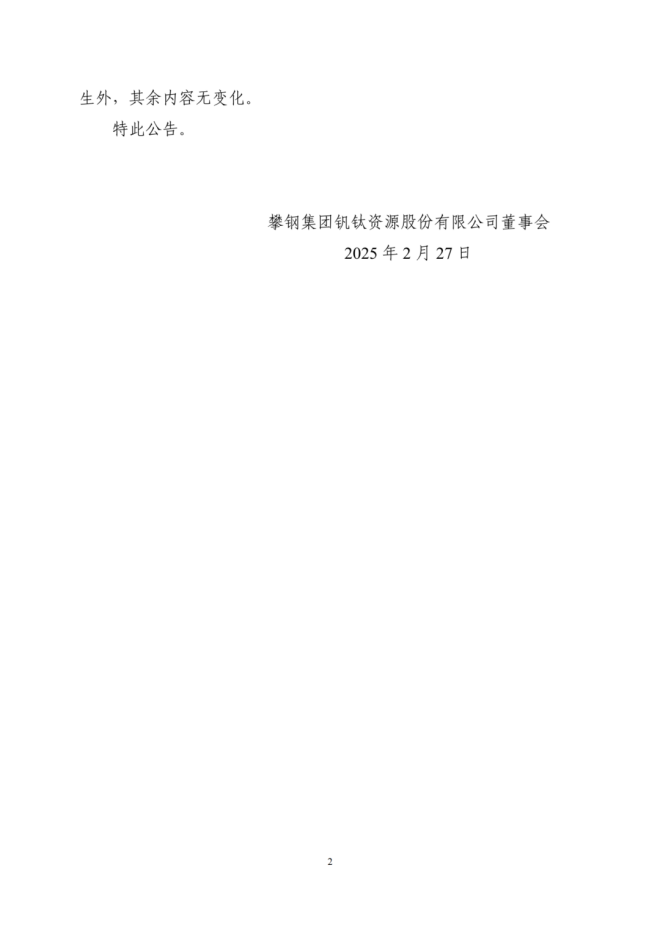 2月27日,釩鈦股份發布《關于完成工商變更登記的公告》。