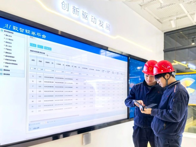 日前,筆者走進(jìn)冷軋廠C立方智慧管控中心,映入眼簾的電子屏上實(shí)時(shí)跳動(dòng)著生產(chǎn)數(shù)據(jù)。藍(lán)光映照下,冷軋廠生產(chǎn)技術(shù)室電氣主任工程師朱旋正緊盯屏幕。“這是我們的AI‘?dāng)?shù)智鋼卷’平臺(tái),每一卷鋼材從原料到成品的全生命周期數(shù)據(jù)都在這里?!敝煨贿吔榻B,一邊用手指快速劃過(guò)平板電腦上的圖表。筆者看到,出口卷號(hào)、酸軋噸鋼成品、成材率損失等數(shù)據(jù)指標(biāo),在大屏幕上一目了然。