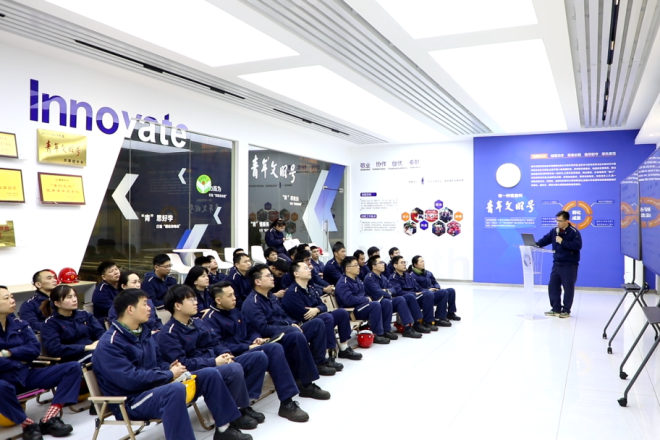 ▲3月18日,朱旋在冷軋廠數(shù)智沙龍活動(dòng)上,為青年職工科普AI知識(shí)并解答相關(guān)技能問(wèn)題