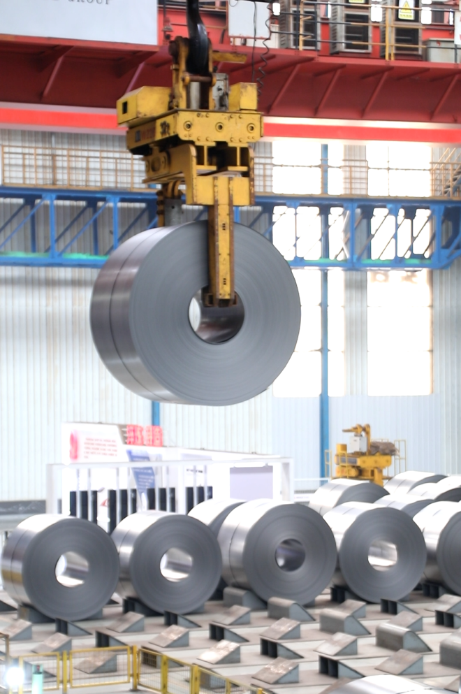 ▲繁忙吊運(yùn)的冷軋鋼卷