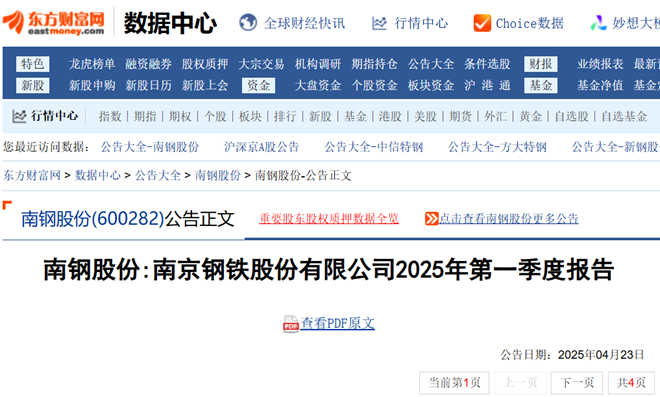 4月22日晚,南鋼股份(600282.SH)發布2025年一季度報告。