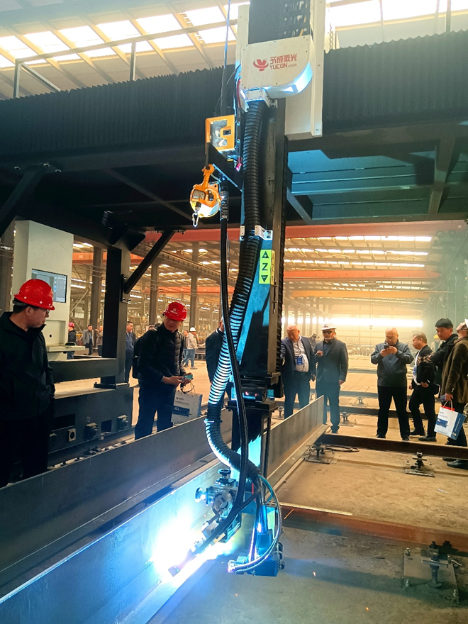 4月11日,上海鋼管行業協會理事單位、武漢予成激光智造有限公司在草原鋼城包頭召開了《予成激光智能裝備推廣會》,重點推出“H型鋼、箱型柱激光-電弧復合焊接生產線”。來自內蒙古自治區的60余家鋼結構企業參會,協會副秘書長盧致逵應邀代表協會出席。