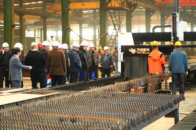 ▲會議代表考察雙工位H型鋼激光切割生產線
