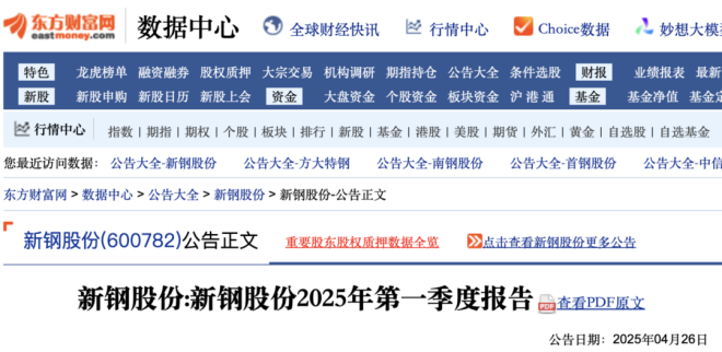 4月26日,新余鋼鐵股份有限公司(以下簡稱“該公司”)披露2025年第一季度報告。