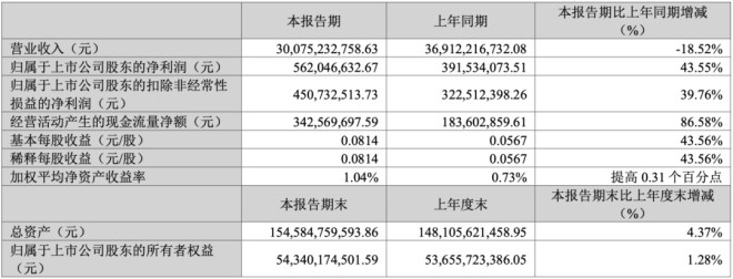 一季度,該公司實現利潤總額 12.02 億元,實現歸屬于上市公司股東的凈利潤 5.62 億元,分別同比增長 32.68%、43.55%。
