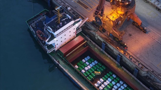 在廣西鋼鐵成品碼頭,一艘艘滿載鋼材的貨輪駛向亞洲、美洲等地區市場。