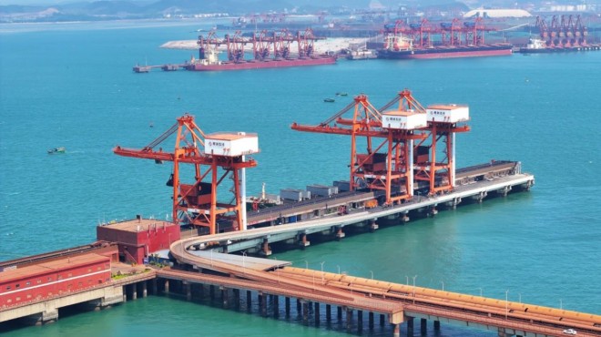 廣西鋼鐵原料碼頭進行原燃料卸船作業 鄒華勇 攝