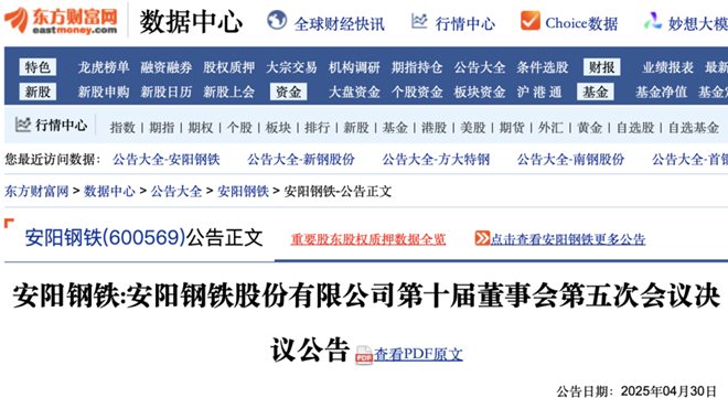 4月30日,安陽鋼鐵股份有限公司(以下簡稱“該公司”)發(fā)布第十屆董事會第五次會議決議公告,披露2025年度固定資產投資計劃。