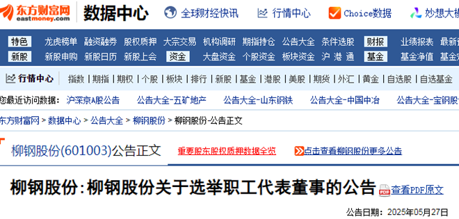 5月27日,柳鋼股份發布了關于選舉職工代表董事的公告。