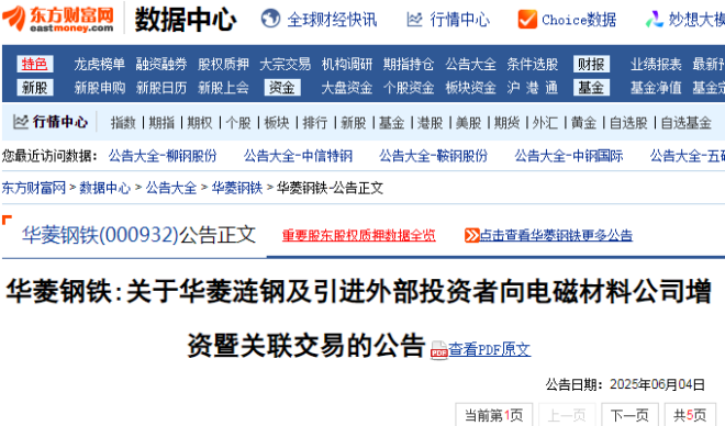6月4日,華菱鋼鐵發布了關于華菱漣鋼及引進外部投資者向電磁材料公司增資暨關聯交易的公告(以下簡稱“公告”)。