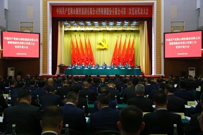 6月19日,中國共產(chǎn)黨鞍山鋼鐵集團有限公司暨鞍鋼股份有限公司第三次黨員代表大會在鞍鋼會展中心召開。鞍鋼集團黨委書記、董事長譚成旭出席會議并講話。