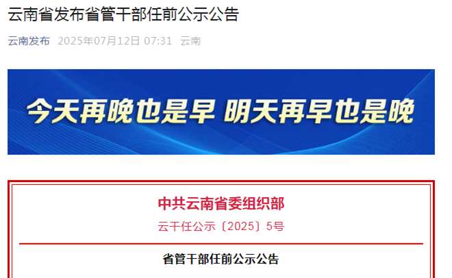7月12日,中共云南省委組織部發(fā)布了云南省管干部任前公示公告,公布了16名同志擬任職務。