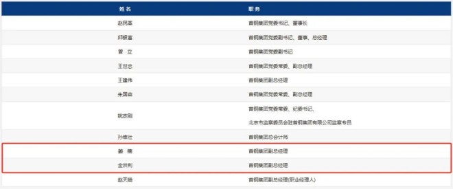 據首鋼集團官網最新顯示,姜楠、金洪利已任首鋼集團副總經理。