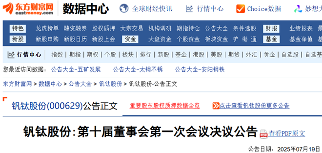 攀鋼集團釩鈦資源股份有限公司(以下簡稱“公司”)于 2025 年 7 月 18 日 16:00 召開公司第十屆董事會第一次會議,審議并通過了多項議案。