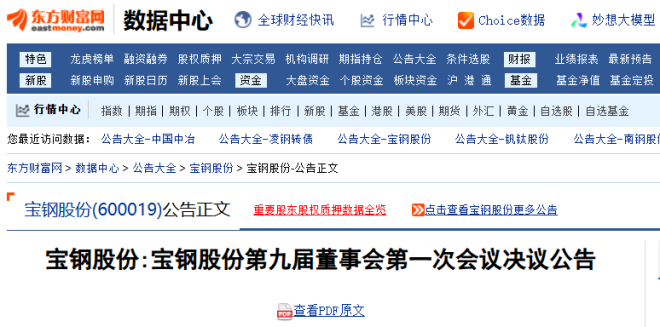 8月15日,寶鋼股份發布了《寶鋼股份第九屆董事會第一次會議決議公告》(以下簡稱《公告》)。