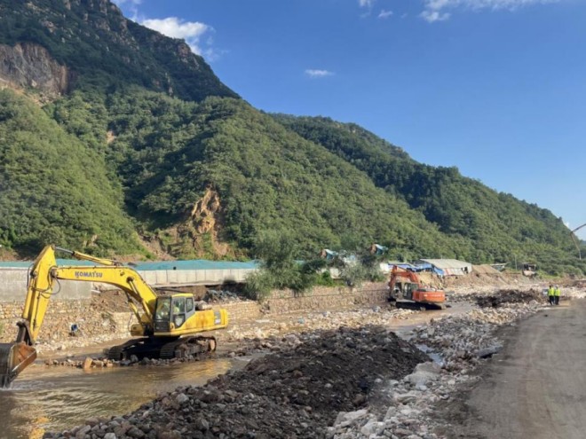 8月5日深夜,接到救援指令后,中冶武勘第一時間啟動應急預案,緊急調配挖掘機、裝載機、壓路機等十幾臺大型機械設備,并迅速從就近項目中抽調出一批技術精湛、經驗豐富的專業人員,組成抗洪搶險救援隊,連夜奔赴受災嚴重的興隆縣陡子峪鄉與當地干部群眾并肩作戰,全力投入到抗洪搶險工作中。