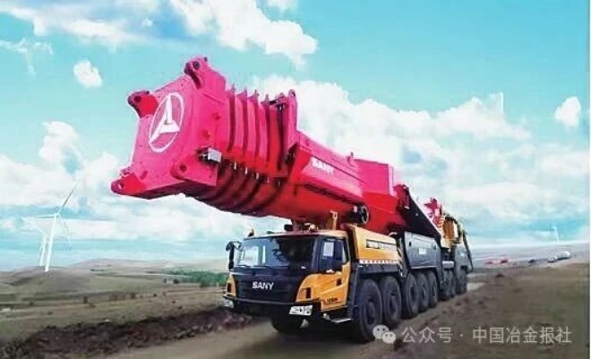 三一重工大噸位汽車吊吊臂使用到湘鋼生產(chǎn)的超高強(qiáng)Q1300E工程機(jī)械用鋼。