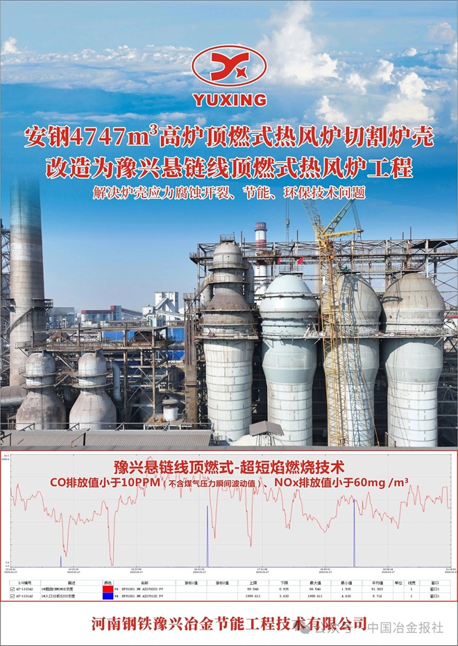 安鋼4747m3高爐小拱頂熱風爐切割爐殼改造為豫興懸鏈線頂燃式熱風爐后優勢凸顯