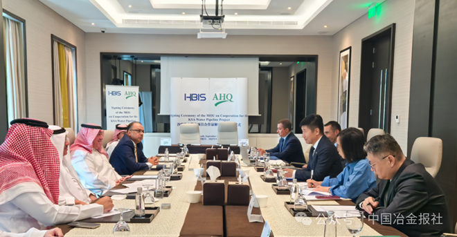 當(dāng)?shù)貢r間9月24日,河鋼集團與AHQ集團在利雅得簽署沙特輸水管線項目合作諒解備忘錄。河鋼集團董事長劉鍵與AHQ集團董事長塔里克·阿卜杜勒哈迪·阿勒卡塔尼圍繞鞏固既往合作成果、共探未來合作項目等話題進行深入交流,并代表雙方在合作諒解備忘錄上簽字。