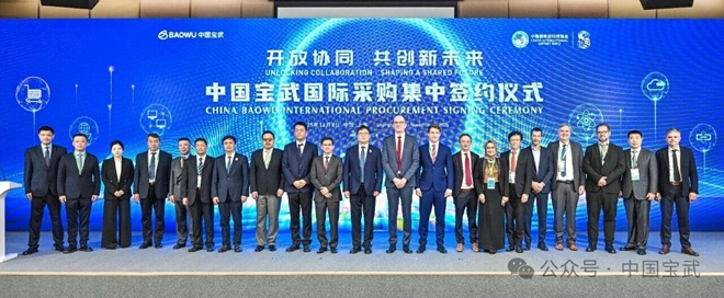 11月8日下午,第八屆中國國際進口博覽會期間,寶武在上海國家會展中心舉辦國際采購集中簽約儀式。活動以“開放協同,共創新未來”為主題,寶武與來自德國、法國、日本、蒙古等國家的多家全球合作伙伴簽署了涵蓋智能裝備、資源開發、生產協作等領域的多項協議,不僅進一步拓展了寶武作為全球規模最大鋼鐵企業在全球產業鏈中的合作空間,也彰顯了寶武深化國際合作、共享發展機遇的堅定決心。寶武黨委常委、副總經理費鵬出席活動并致辭。