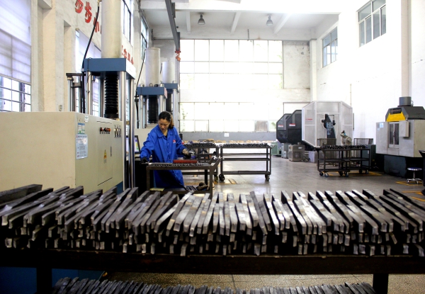 圖為軋檢車間開足馬力對鋼產品進行力學性能檢測時情景。(張俊攝)