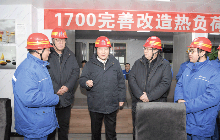 圖為本鋼集團黨委書記、董事長陳繼壯在板材熱連軋廠1700生產線完善改造后現場,見證了這架“功勛軋機”第五次“升級”一次熱負荷試車成功這一歷史時刻。