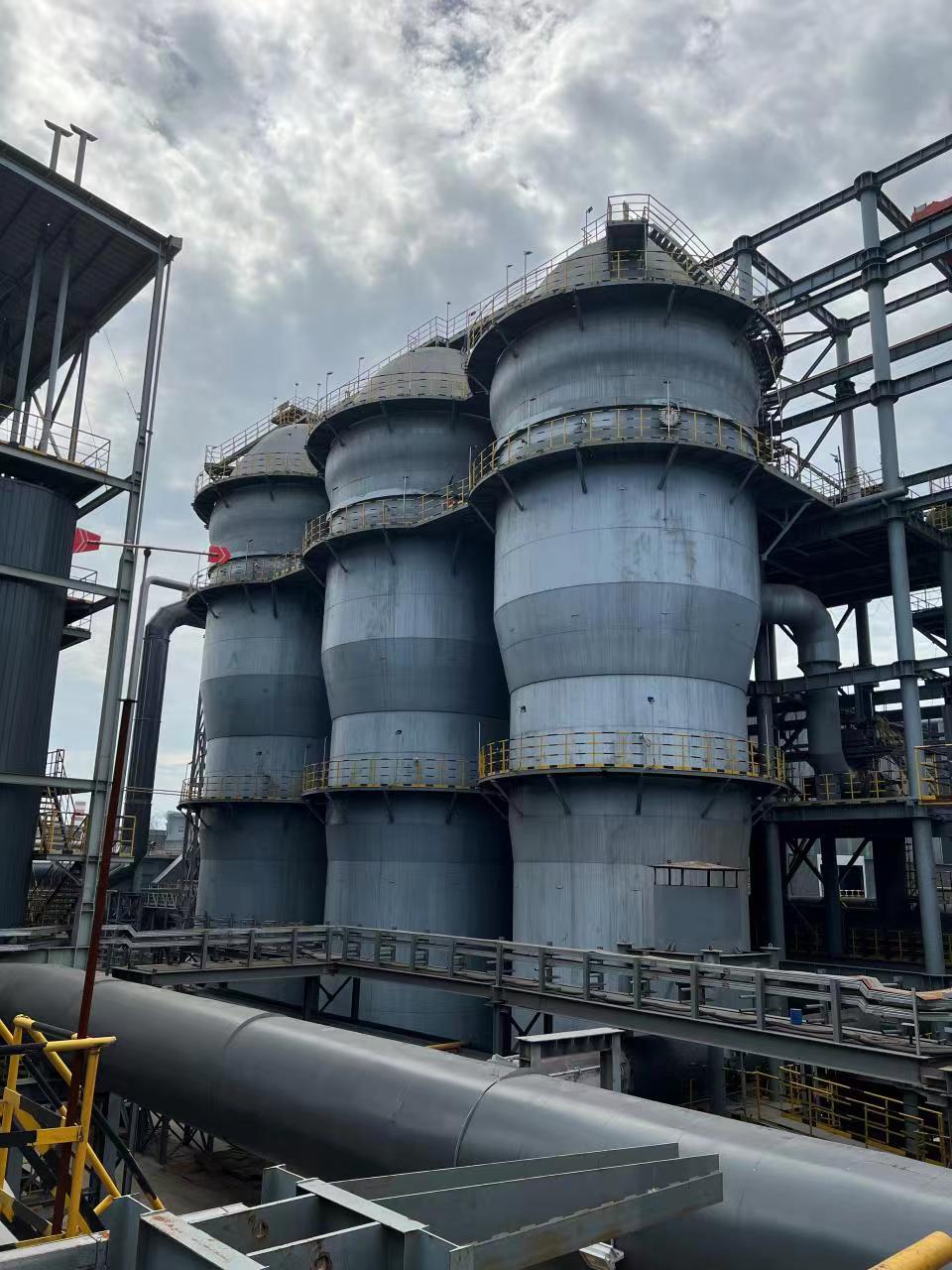 永鋒臨港鋼鐵熱風爐和秦皇島宏興鋼鐵有限公司熱風爐正是根據(jù)上述理論實踐指導,才終于實現(xiàn)了上述矛盾體的對立統(tǒng)一,將熱風爐拱頂溫度與鼓風溫度之間的差值縮小到50℃左右,通過優(yōu)化混合燃燒噴嘴結構強化均勻混合、加大混合燃燒空間實現(xiàn)真正的完全燃燒、優(yōu)化格子磚結構提高格子磚利用率,強化蓄熱換熱性能,從而實現(xiàn)了熱風爐高風溫、低氮氧化物排放、低煤氣消耗等多重目標的。