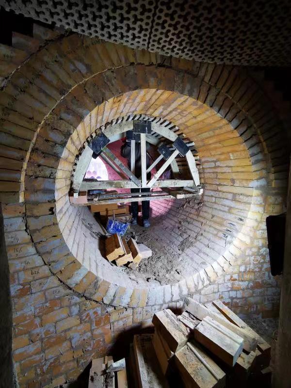 在相同風量情況下,懸鏈線拱頂本就擁有更加充裕的燃燒空間,空間內的煙氣分布優(yōu)于其他形狀的熱風爐拱頂結構,而且是目前已有的熱風爐拱頂結構受力最合理、最穩(wěn)定長壽的結構。國際歷史資料記載,其懸鏈線拱頂壽命可達50年~60年。
