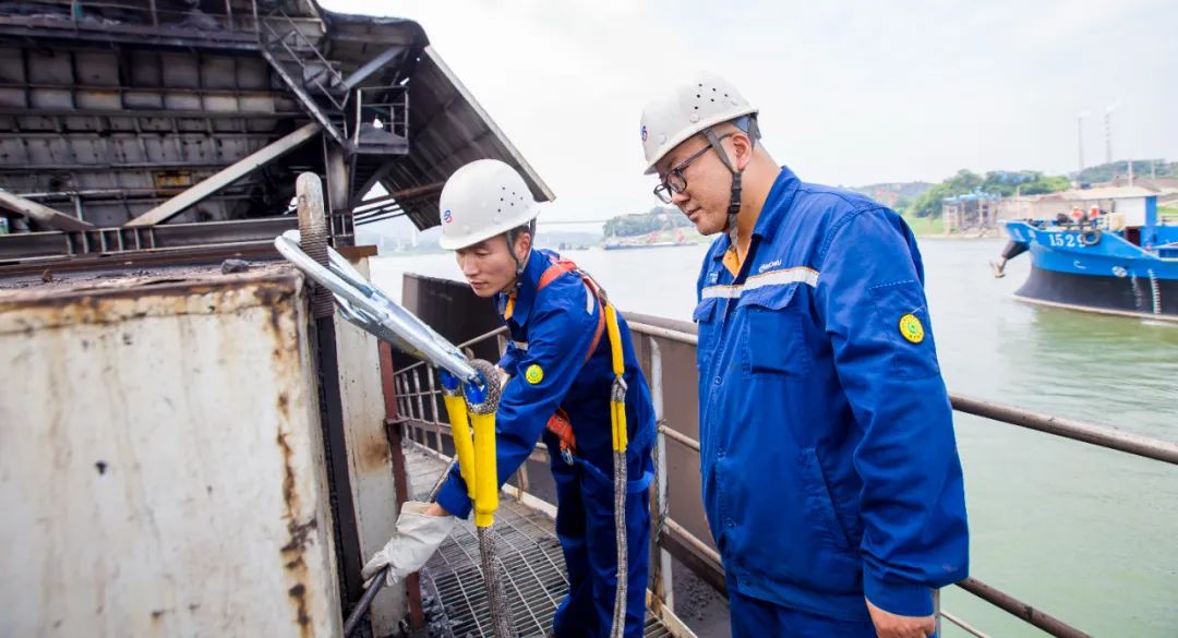 要保證“紅五月”目標的完成,礦料輪船的躉船皮帶機、陸地皮帶機正常運行是關鍵。港口作業區乙班陳勇生發現一號碼頭礦料輪船100梭槽頻繁堵料,導致浮吊機停機,無法連續卸載作業。為確保礦料輪船正常運行,他利用節前檢定修計劃實施時間,帶領班組黨員骨干及時清理干凈梭槽內的積料,并開展問題攻關。
