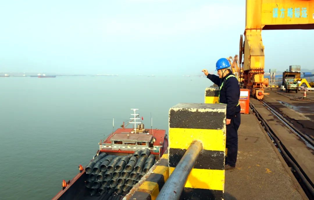 而在該公司碼頭作業區,只見江面千帆競發,碼頭一派繁忙景象。物流運輸部3號碼頭值班長劉星一邊向船主們賀新年,一邊忙著協調產品發運,并對各項設備展開安全巡查,保障節日期間碼頭運輸有序、物流通道暢通,各項工作順利開展。